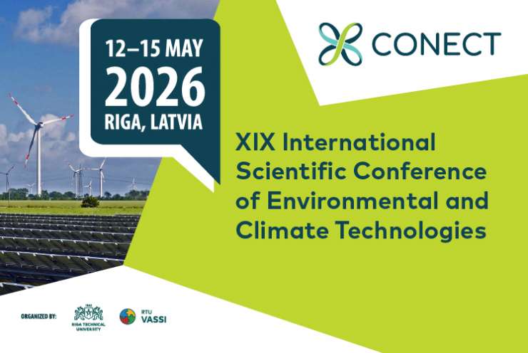 We invite you to join the XIX Scientific Conference on Environmental and Climate Technologies, CONECT 2026, which will take place from May 12th to 15th the Riga Technica...