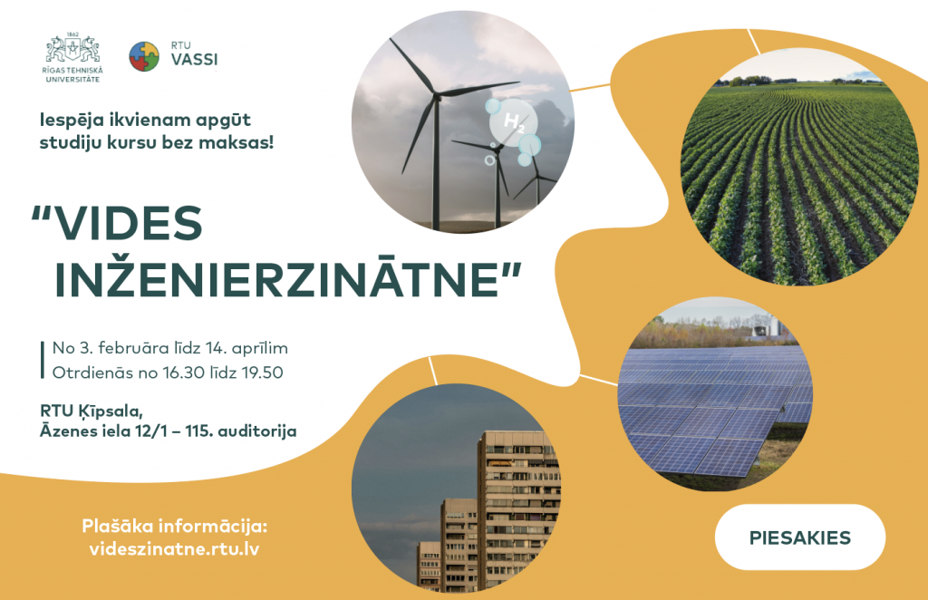 Rīgas Tehniskās universitātes Vides aizsardzības un siltuma sistēmu institūts (RTU VASSI) ir iecerējis mūžizglītības studiju moduli “Integrētas vēja energosistēmas un ūdeņradis”. Kursā kopīgi analizēsim, diskutēsim un domāsim par vēja elektrostacijām un ūdeņraža ražošanu: par tehnoloģiskajiem risinājumiem un to integrēšanu esošajās energosistēmās, balstoties ekonomiskajos, sociālajos, normatīvajos, vides un klimata aspektos.