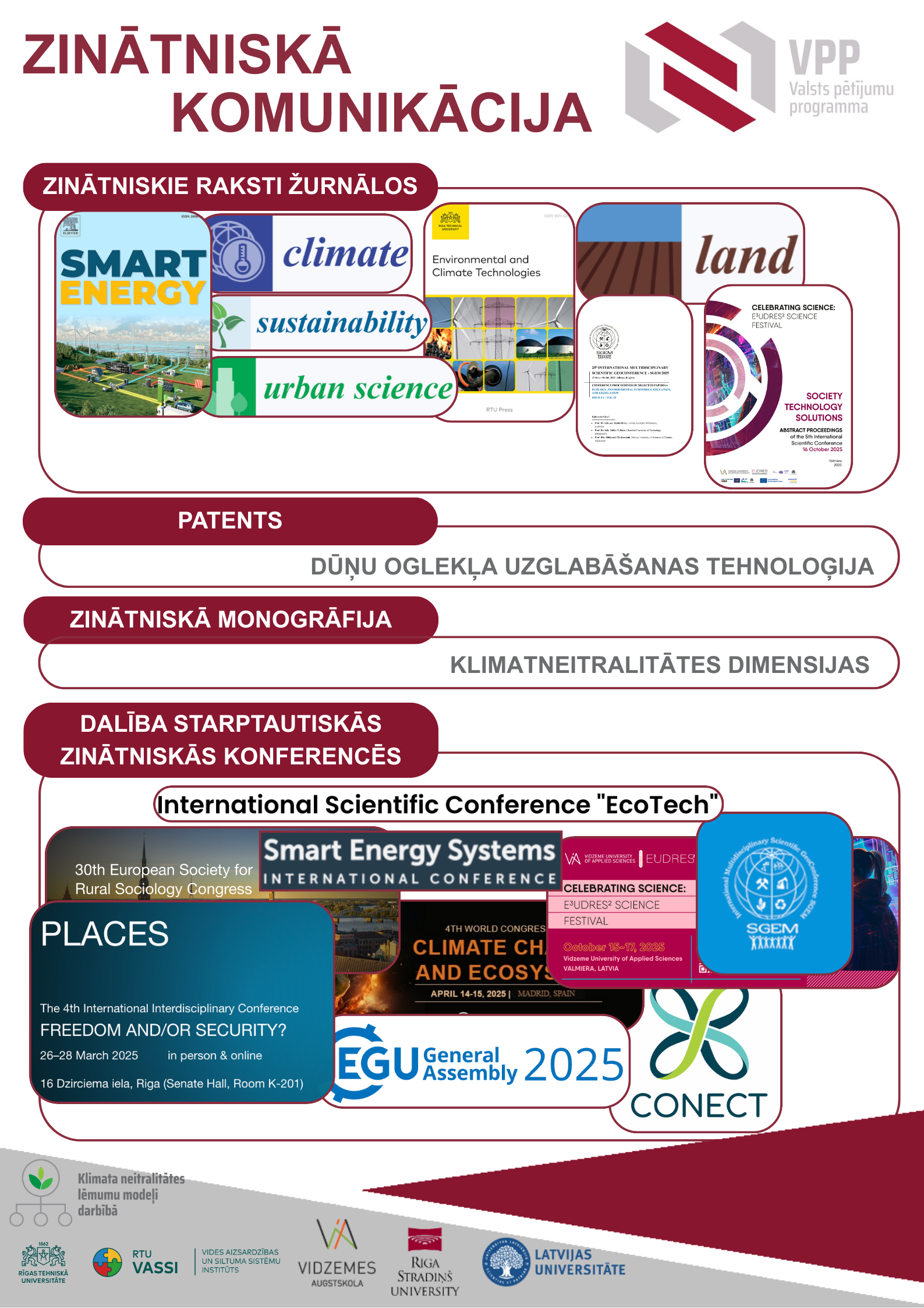 Ar aktualitāti variet iepazīties šajā saitē: Uzsākam Īstenot projektu Klimata neitralitātes lēmumu modeļi darbībā Valsts pētījuma programmas “Klimatneitralitātes mērķu sasniegšanas lēmumu pieņemšanas atbalsta sistēma” ietvarā | VIDES ZINĀTNE (rtu.lv)